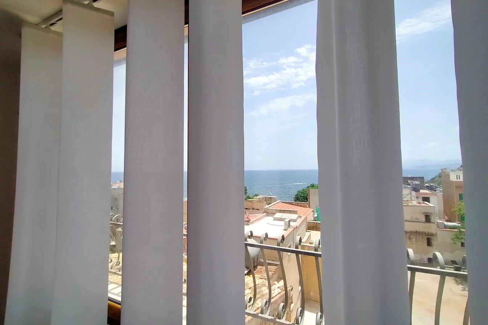 You enter the house from an entrance hall on a room with a nice and convenient built-in bookcase, large living room with a beautiful window with wonderful panoramic sea view and there is also a balcony. Next we find a kitchenette adjoining the living room equipped with sliding doors so that the two rooms are well disengaged, double bedroom with lovely covered terrace overlooking the sea, a small bedroom, a bathroom with shower and finally a storage room.