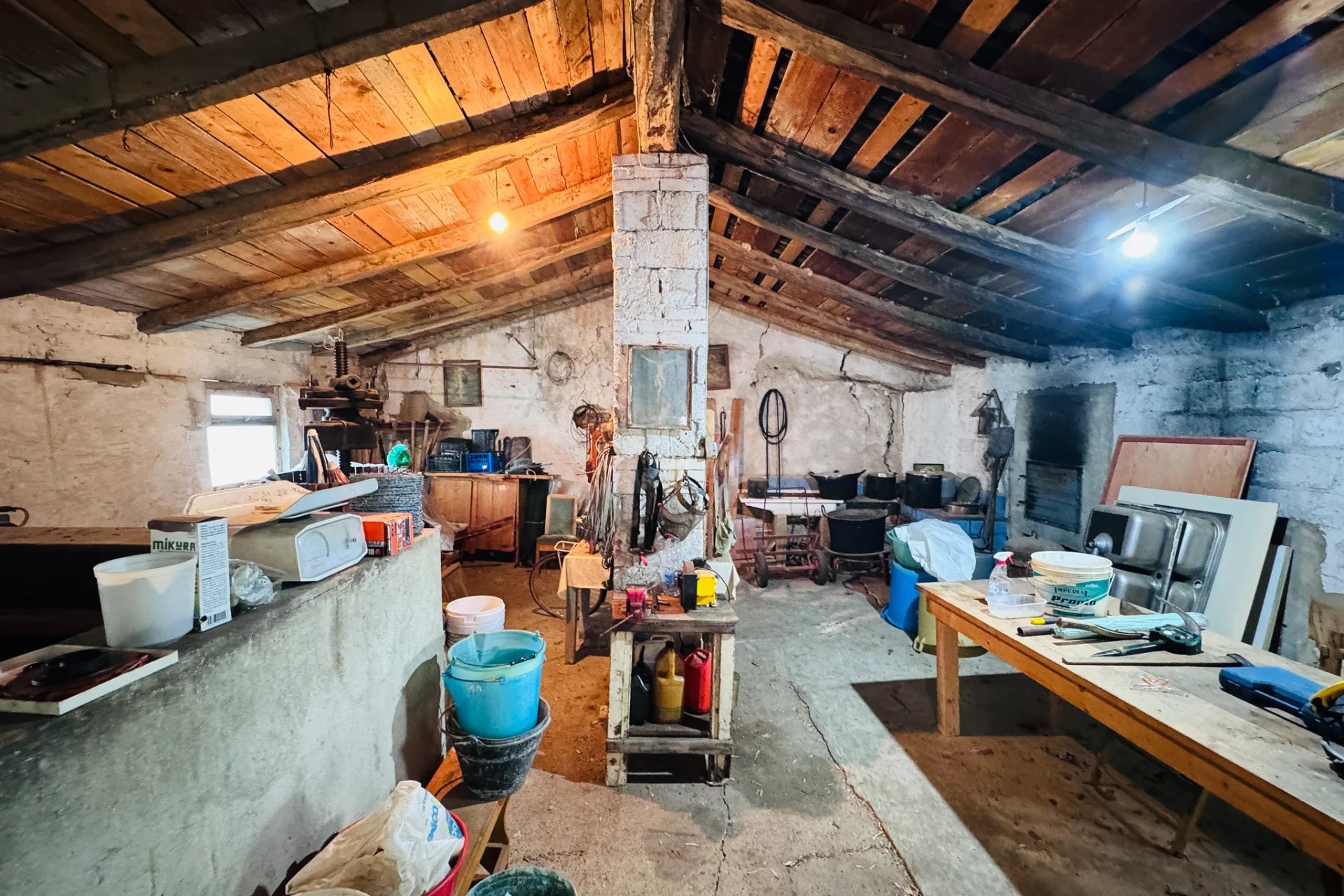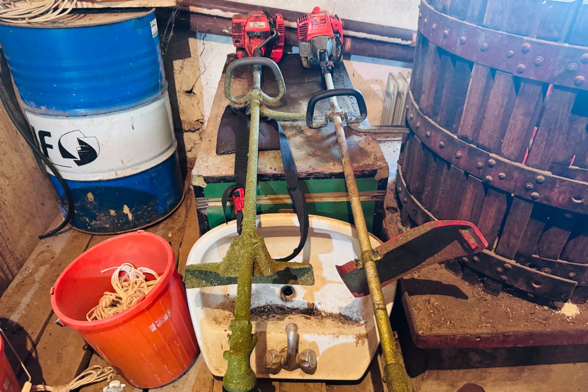 Der erste Raum neben der Außenküche enthält eine alte Weinpresse, die im Verkaufspreis inbegriffen ist, sowie alle Arten von Geräten, die zur Pflege des Anwesens und zur Ernte der Früchte verwendet werden können. Tatsächlich ist alles, was Sie auf unseren Fotos und in der virtuellen Tour sehen, im Preis inbegriffen – sogar ein Traktor!