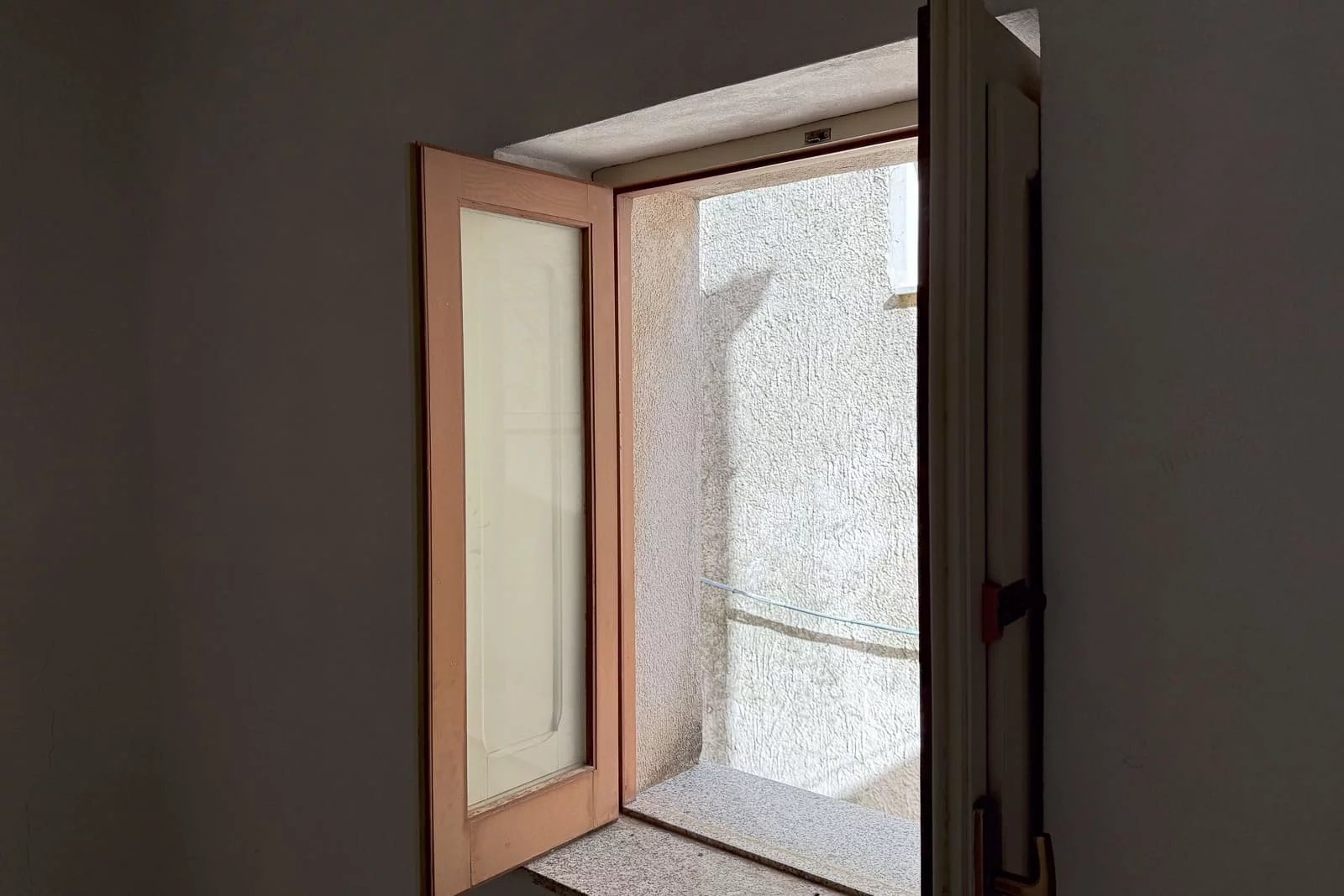 A well-maintained staircase in marble and polished granite takes you up to the second floor, where a small bedroom is lit by a street-front window. The top floor is completely different, spacious and bright, with two good-sized rooms and a balcony. The kitchen has a dual exposition and although you are not above the level of the neighbouring houses, the views do take in a bit of the mountainous hills which flank and overlook the village.