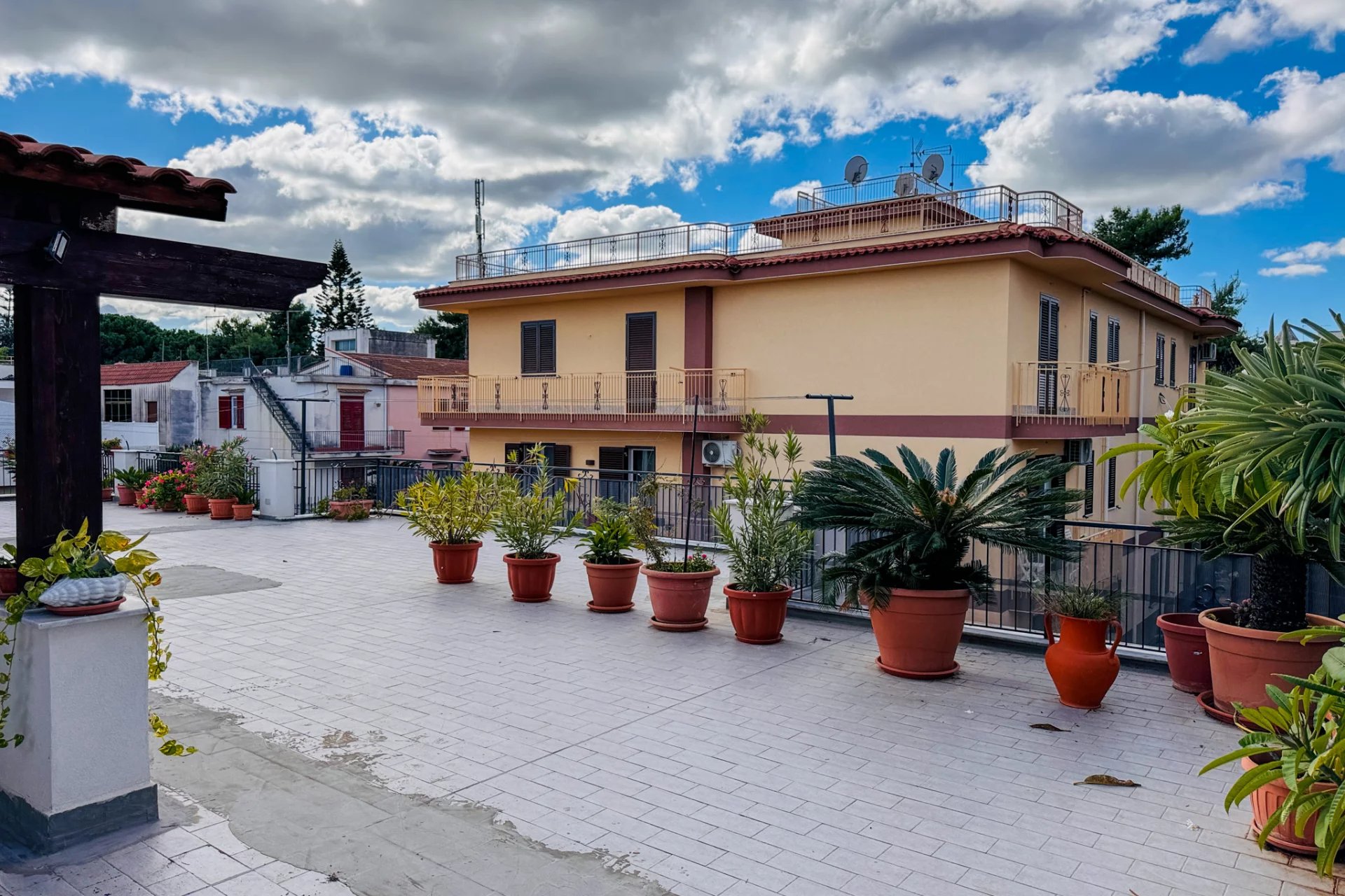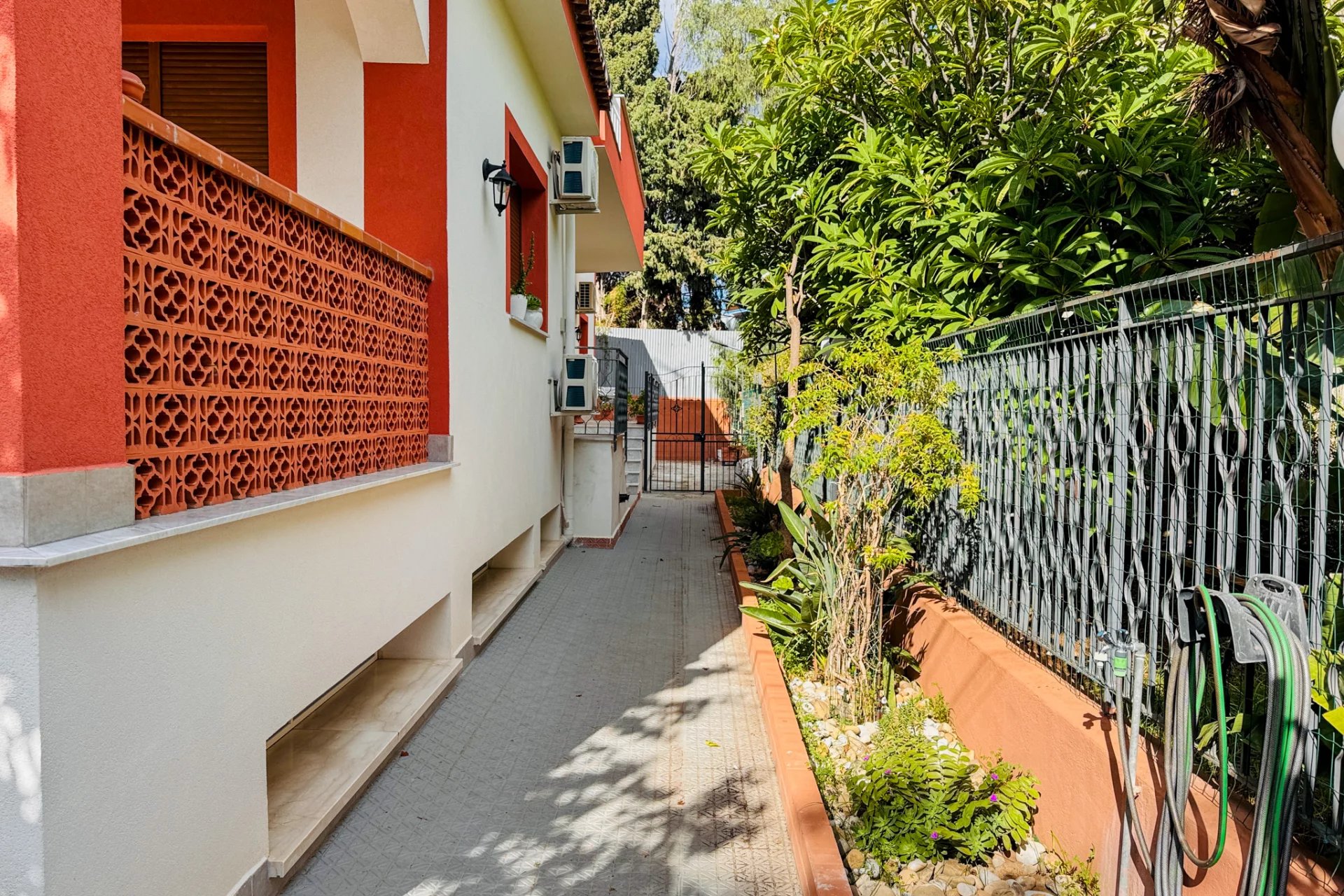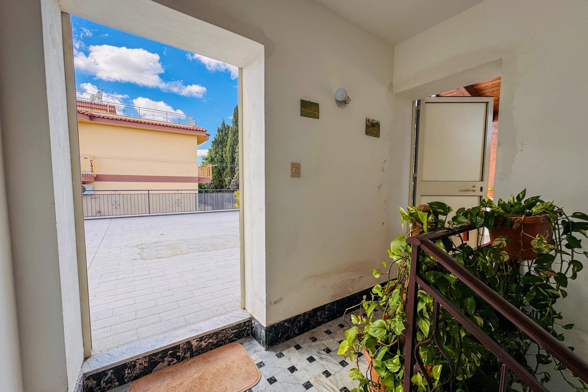 Although the road 40 metres to the west is a moderately busy one, the actual street on which Casa Maria stands is calm street, very leafy and without much traffic. Unusually for Sicily most of the houses have little front gardens and off-street parking.