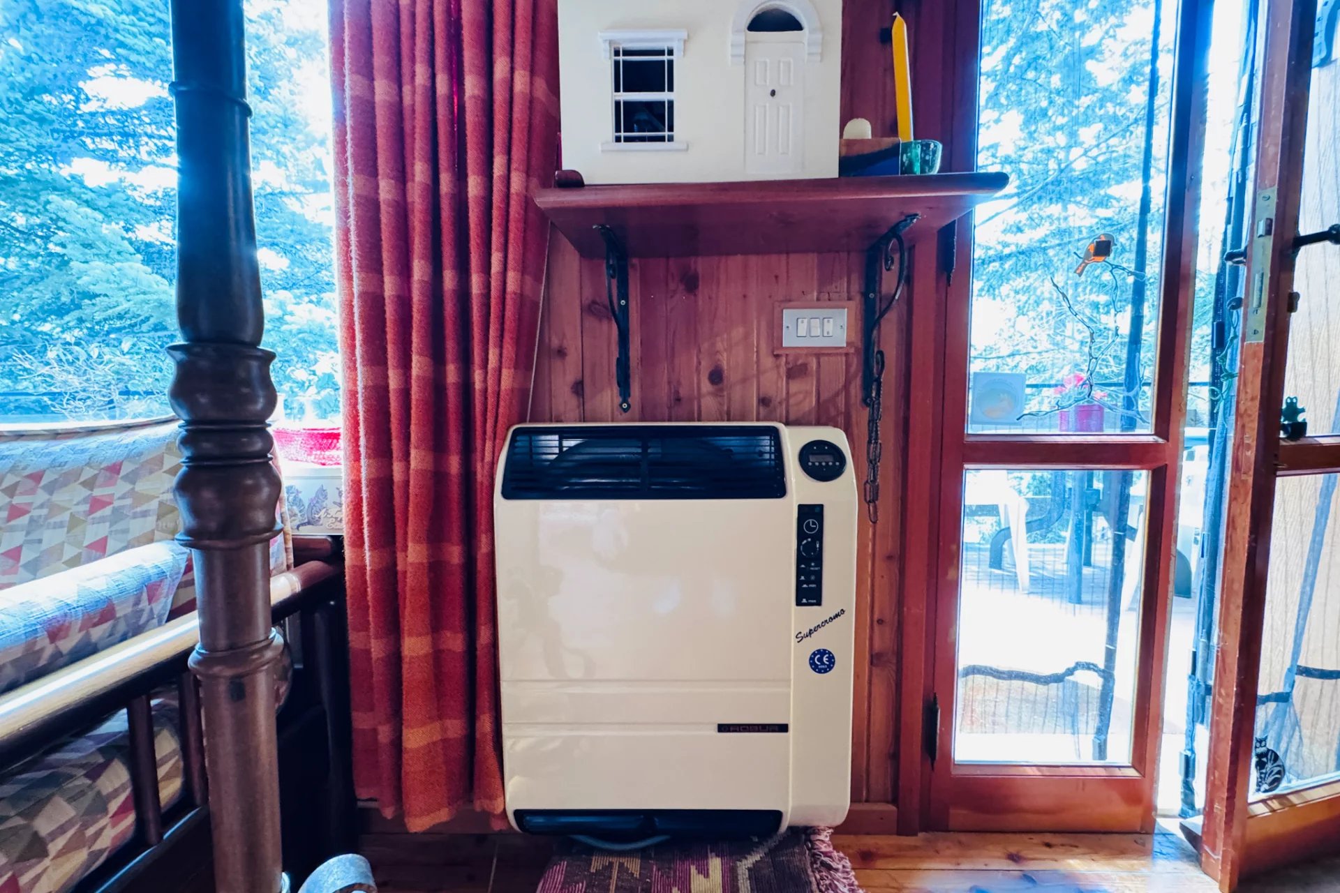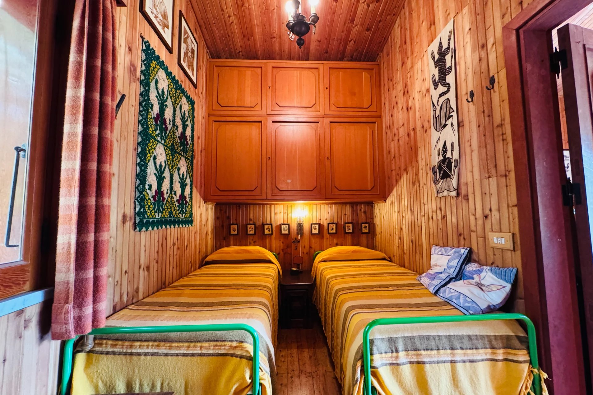 Die Schlafzimmer sind miteinander verbunden, eines davon ist ein Loft, der zu einem Doppelzimmer umgebaut wurde, das sich perfekt für ein Paar eignet. Über eine Leiter gelangt man zum größeren Schlafzimmer mit zwei Einzelbetten und viel Stauraum. Es gibt ein eigenes Badezimmer mit Dusche.