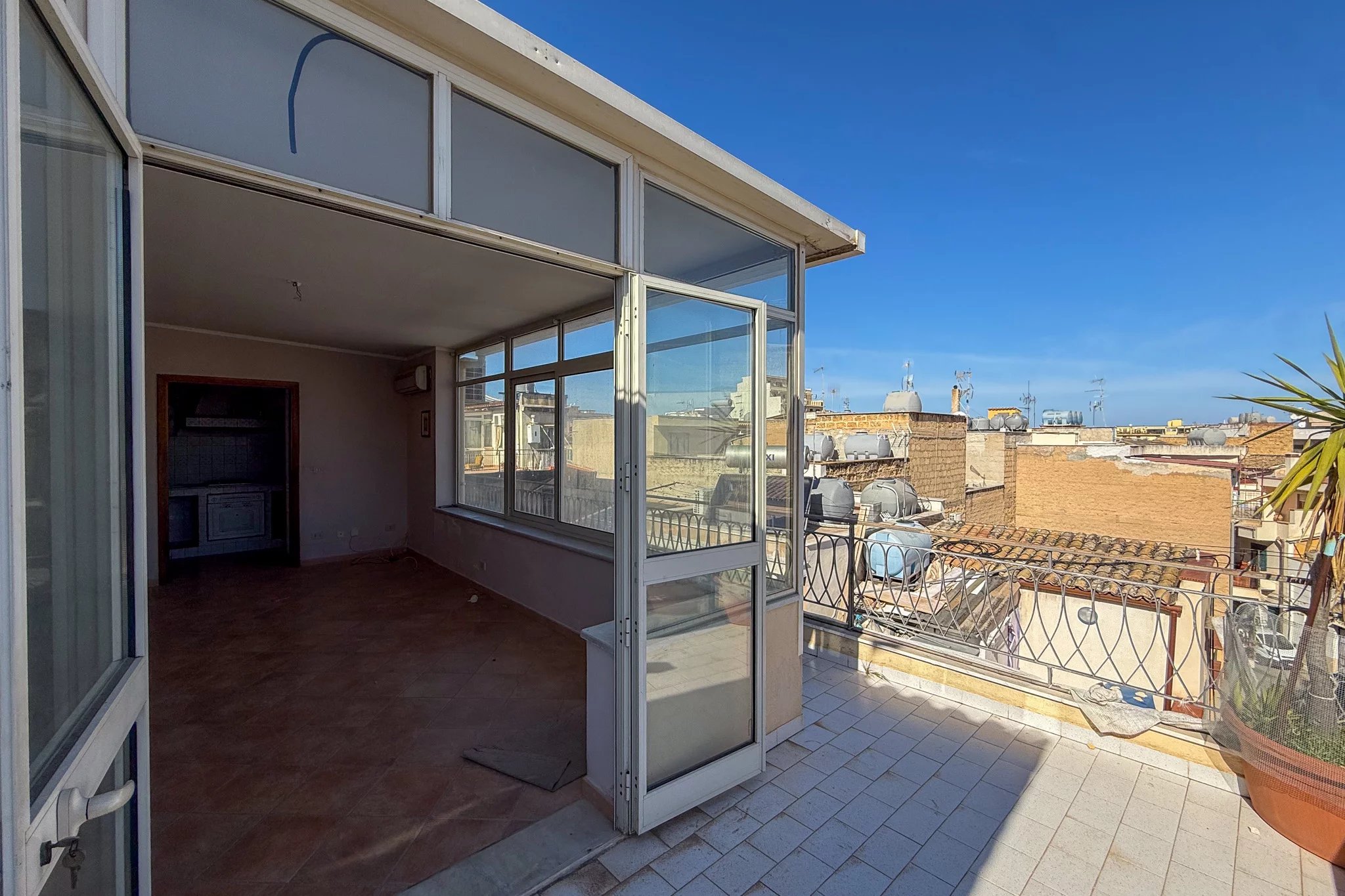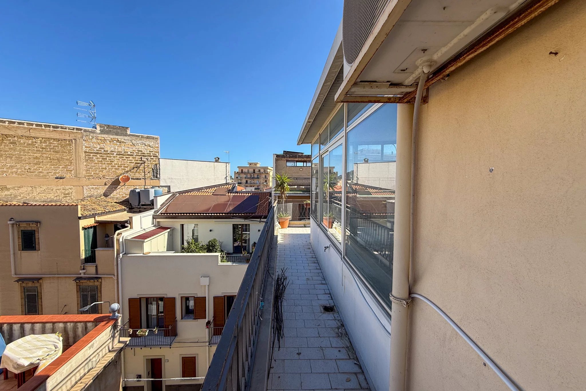 Hohe Decken im gesamten Gebäude verleihen den Räumen einen Hauch von Geschichte und eine luftige Offenheit, und die Balkone zur Via Scoppa lassen natürliches Licht herein. Das oberste Stockwerk ist wahrscheinlich das größte Verkaufsargument: ein offener Raum mit raumhohen Fenstern an zwei Seiten. Dieser führt hinaus auf eine Eckterrasse mit Blick über die Dächer und Glockentürme der Stadt.