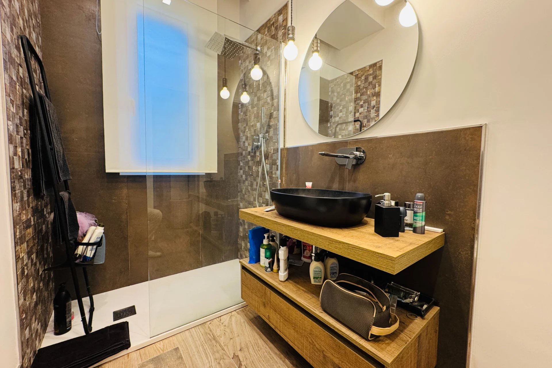 Off a small corridor, the master bedroom is very spacious with a window that faces south-east. The guest bedroom has a window to the opposite side of the house, which is currently somewhat blocked by a huge wardrobe. Once that is moved it will immediately become brighter and seem even bigger. As you can see in our virtual tour, it also makes a good home office with a sofa bed if you don't always need the extra sleeping capacity.