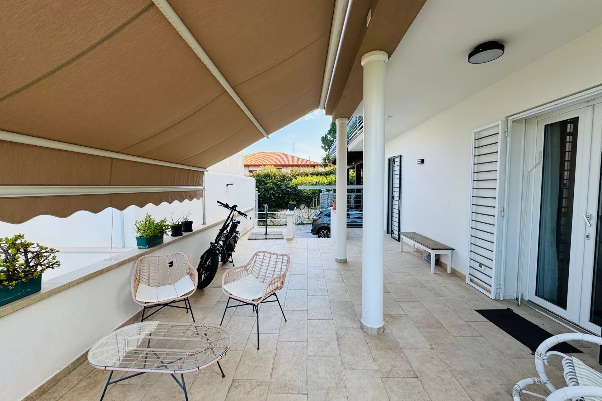 The apartment is on the ground floor of a building whose upper floors are also for sale by our agency, under the name of Casa Patti. This is a three bedroom property with a sea-view roof terrace, and, of course, if you were in a position to buy both apartments together you would be able to create a really expansive family villa, or maintain the two apartments and use one as a guest house.