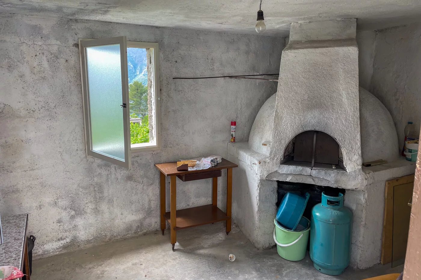 The final feature of interest is an unusual little annexe situated directly over the road from the front of the house. This comprises a pair of storerooms, out of sight from the street but facing onto the paddock to the rear. At street level, above these, is a bathroom with a tub, finished in a warm pink tile, and a kind of kitchen with a traditional wood-burning oven, of the kind you can use to fire your own pizzas or prepare the perfect grill. Both of these upper rooms have lovely countryside views through small windows facing onto the valley.