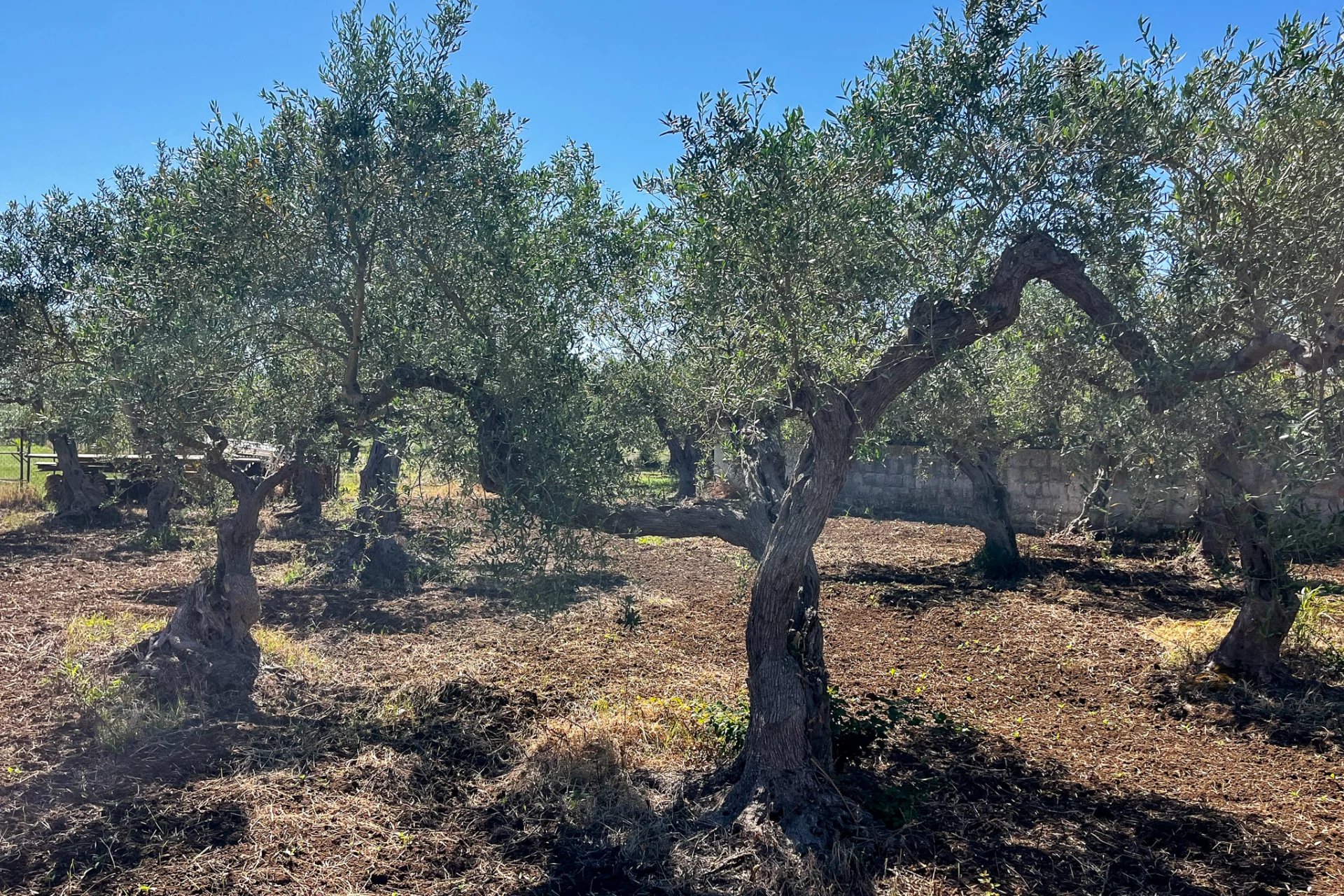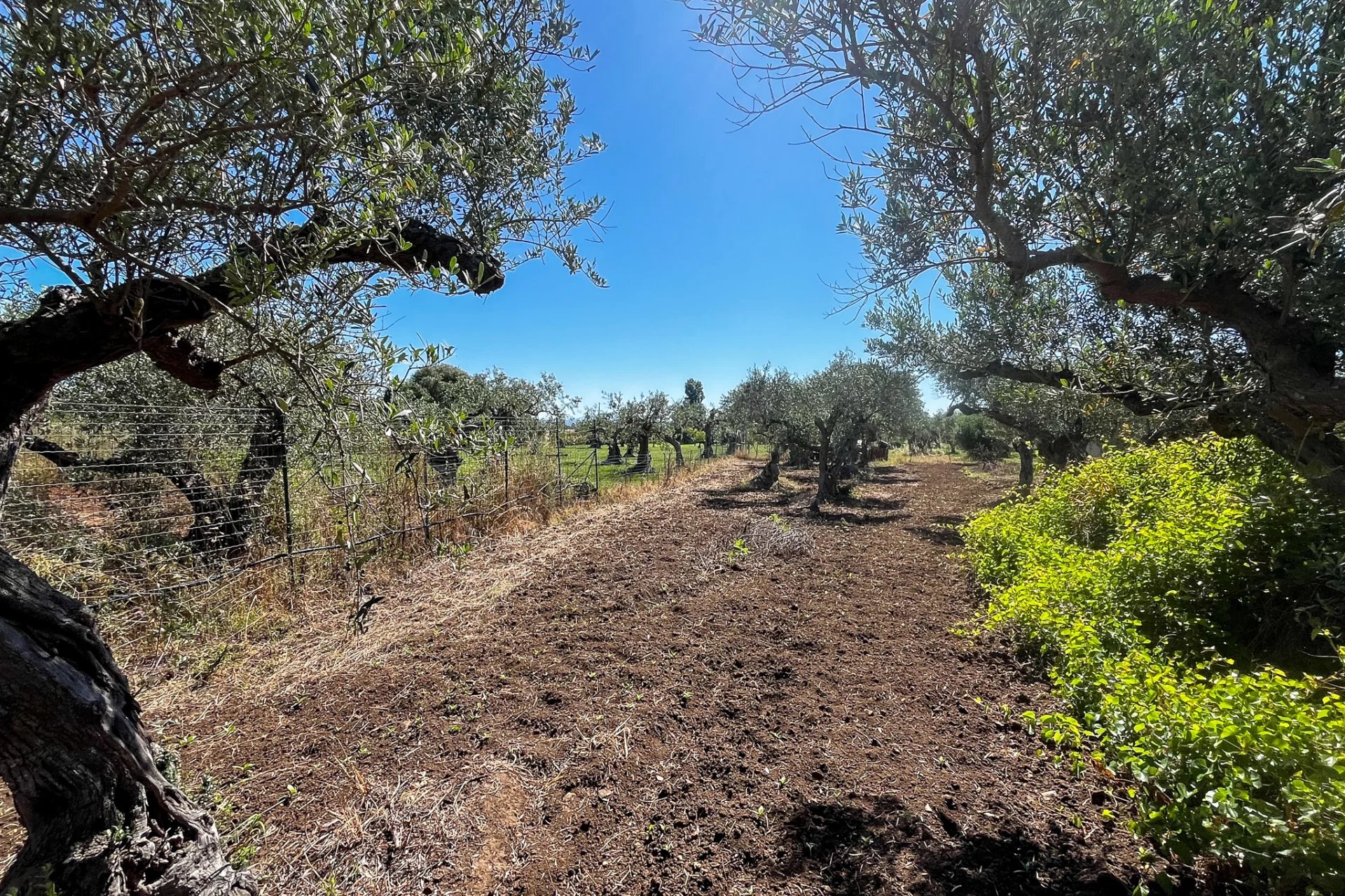 At present the flat land is clear, save for grass and some trees. There are some very mature olives, at least 80 years old, and thirty pine trees near the boundary to the rear. A pair of twin access roads run along each edge of the property, while the front edge is enclosed by a chain link fence.