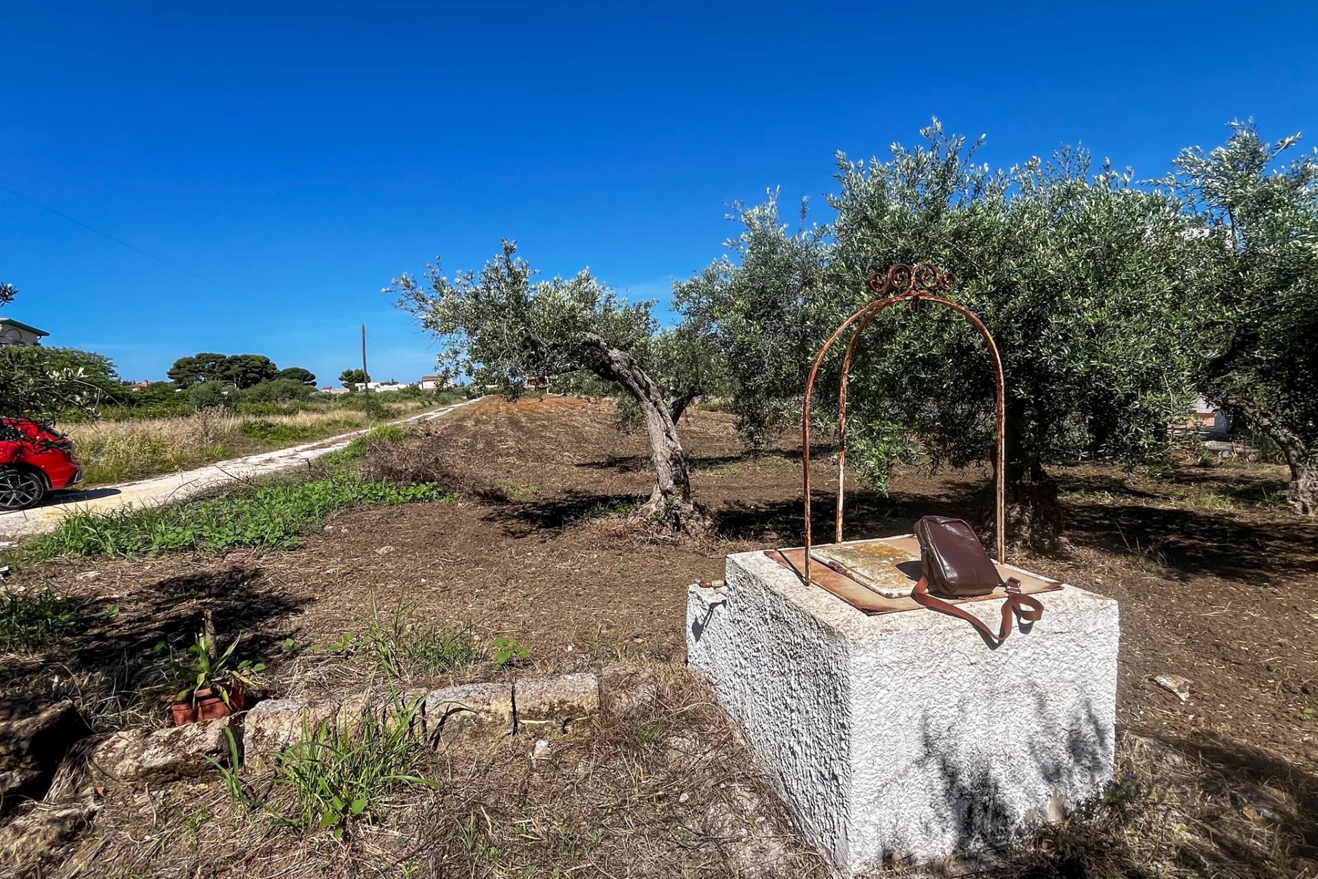 Dieses Grundstück ist ein langgestrecktes Rechteck mit einer Größe von 25 m x 280 m. An einem Ende ist es an die Hauptstraße nach Selinunte angebunden. Es handelt sich um flaches, Ackerland mit einigen schönen Olivenbäumen, die mindestens 80 Jahre alt sein müssen, und einem Wäldchen mit etwa vierzig Kiefern am anderen Ende. Das Nachbargrundstück ist ebenfalls nicht stark bebaut, sodass Sie sich nicht eingeengt fühlen werden, egal wo Sie Ihre neue Villa errichten möchten.