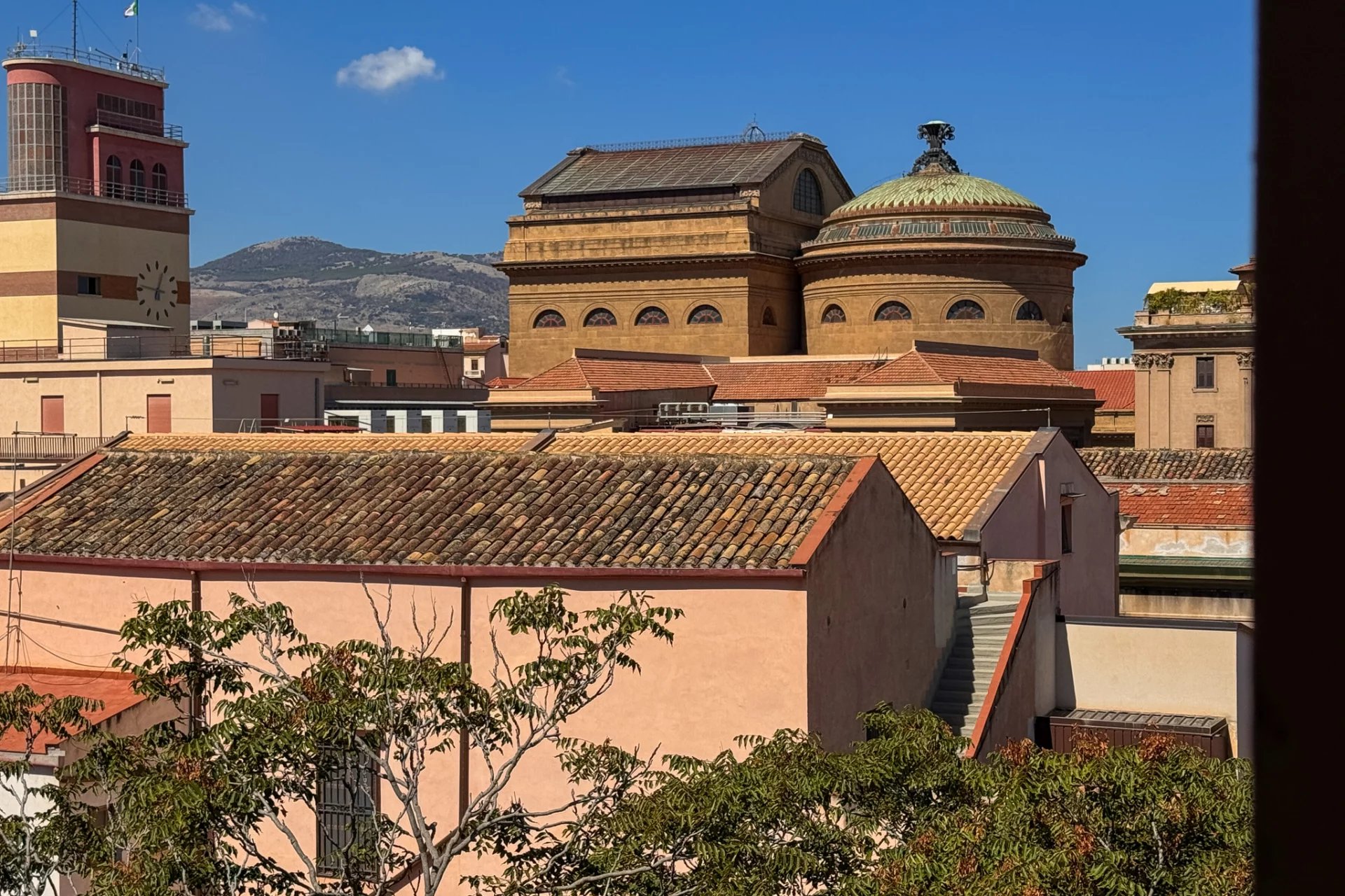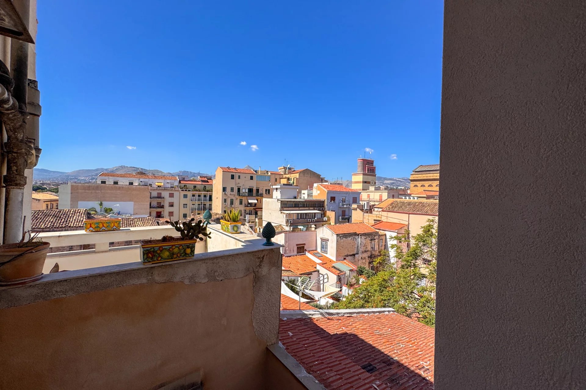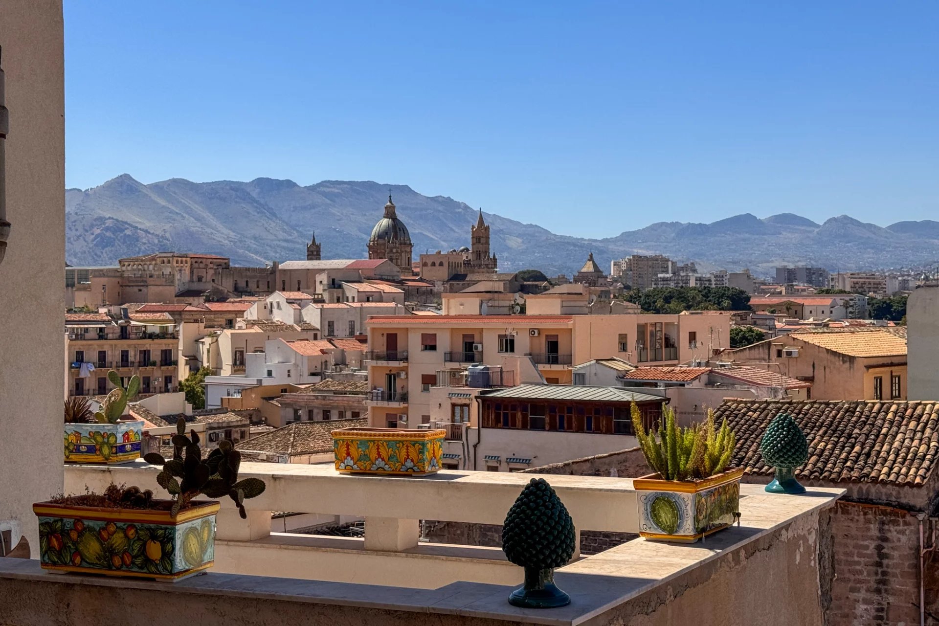 The seventh floor of the building is above the surrounding rooftops and offers truly incredible panoramic views of the historic center of Palermo and the surrounding mountains.
