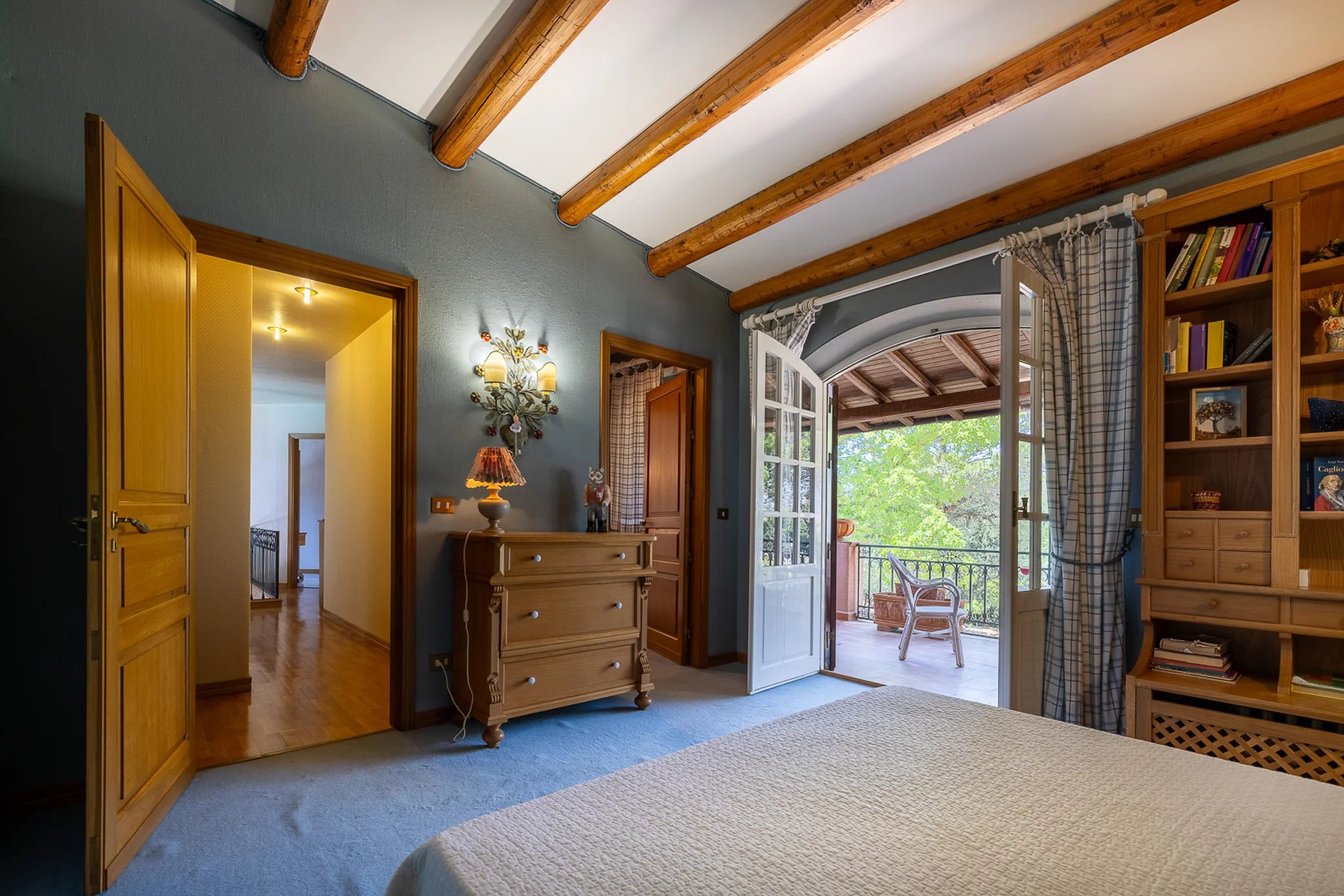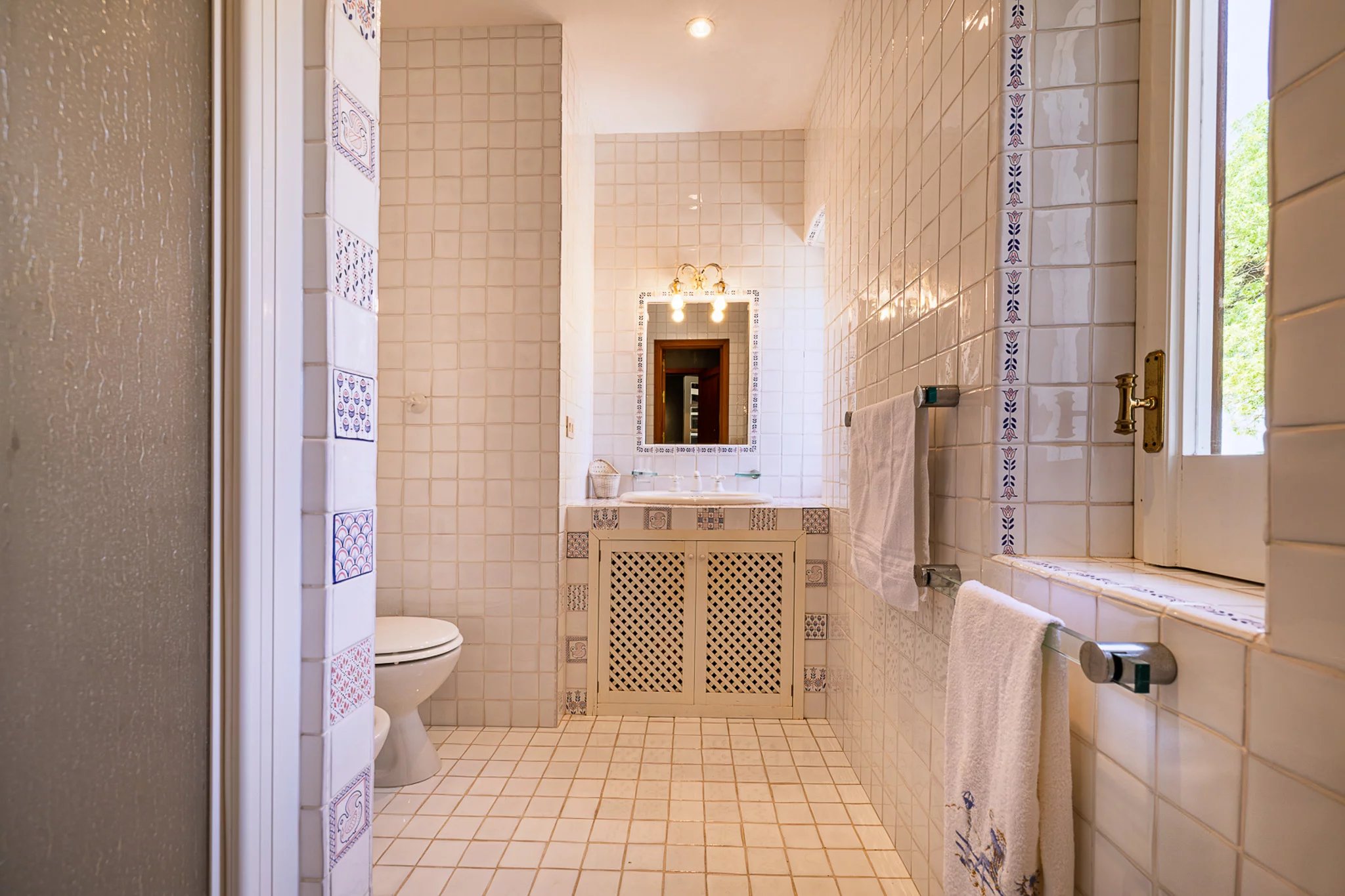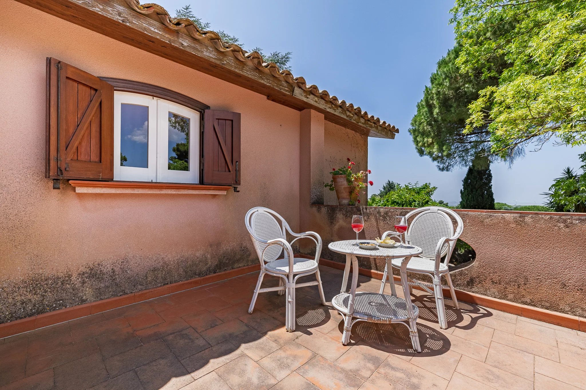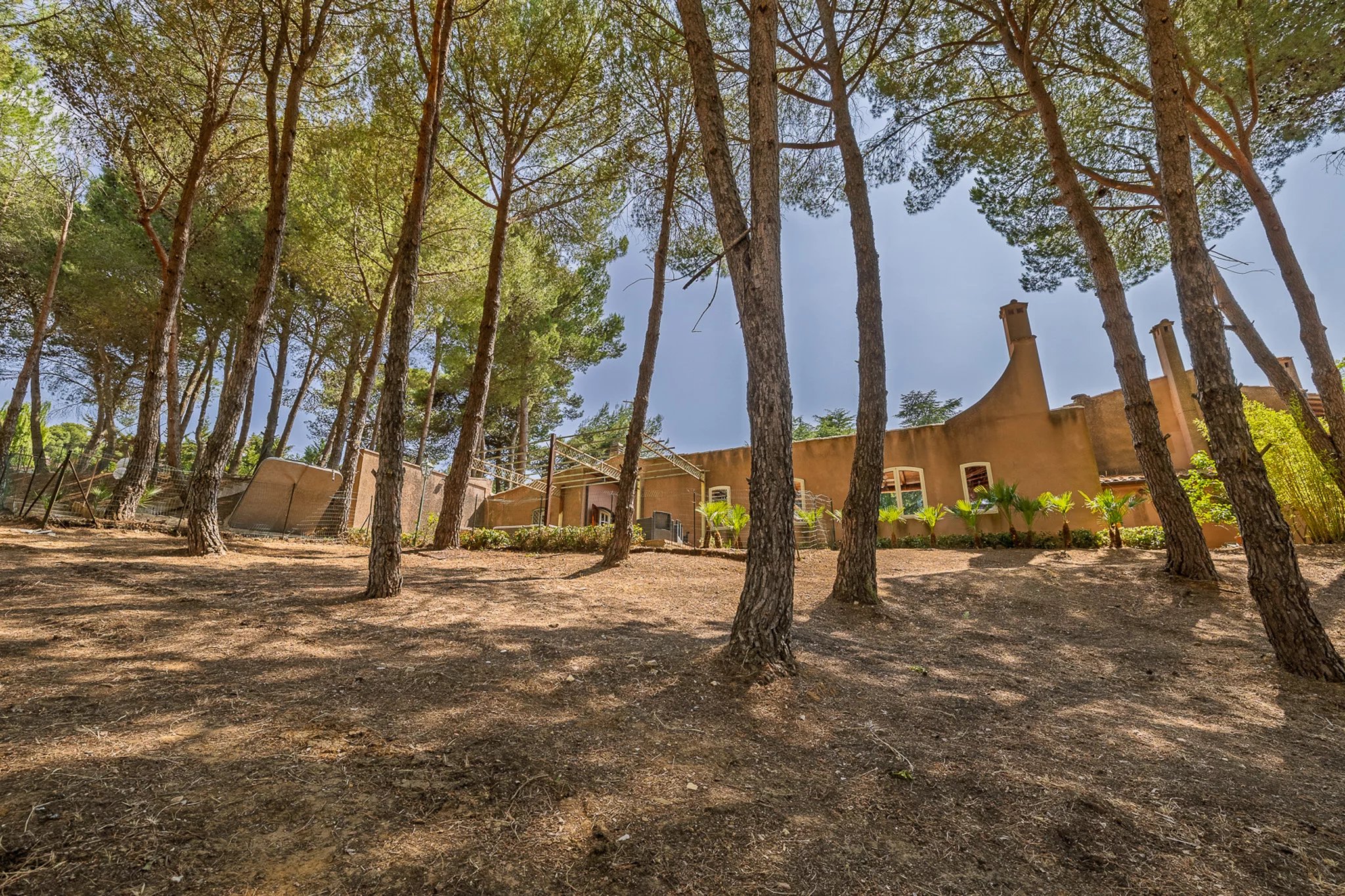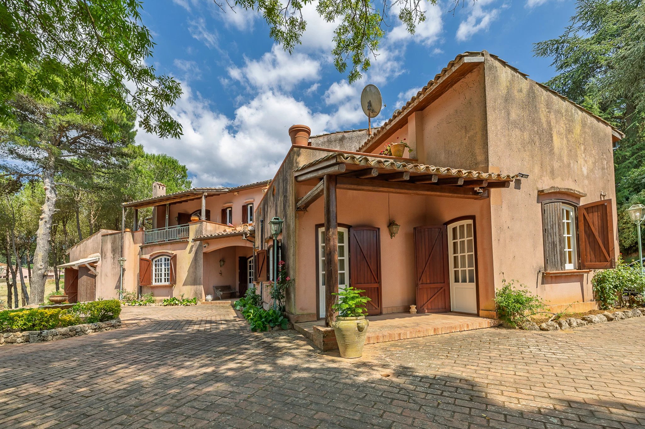 Dahinter erstreckt sich das große Parkgrundstück – ein botanischer Schatz. Hohe Pinien ragen über Olivenhaine, Mandelbäume und mediterrane Zierpflanzen, die über ein Netz aus gewundenen Terrakottawegen und Steinmauern erkundet werden können. Es ist eine private Welt voller Duft und Schatten mit herrlichen Ausblicken auf die umliegenden Hügel und spektakulären Sonnenuntergängen.