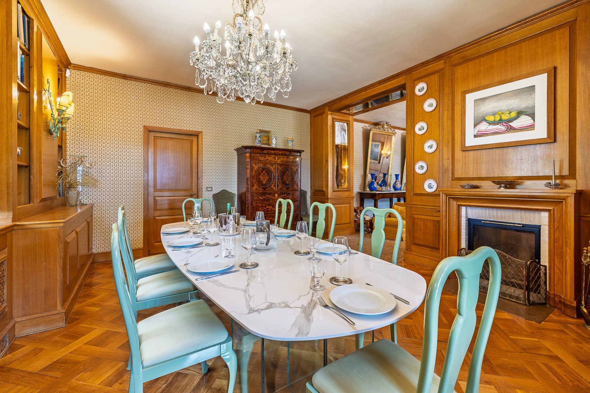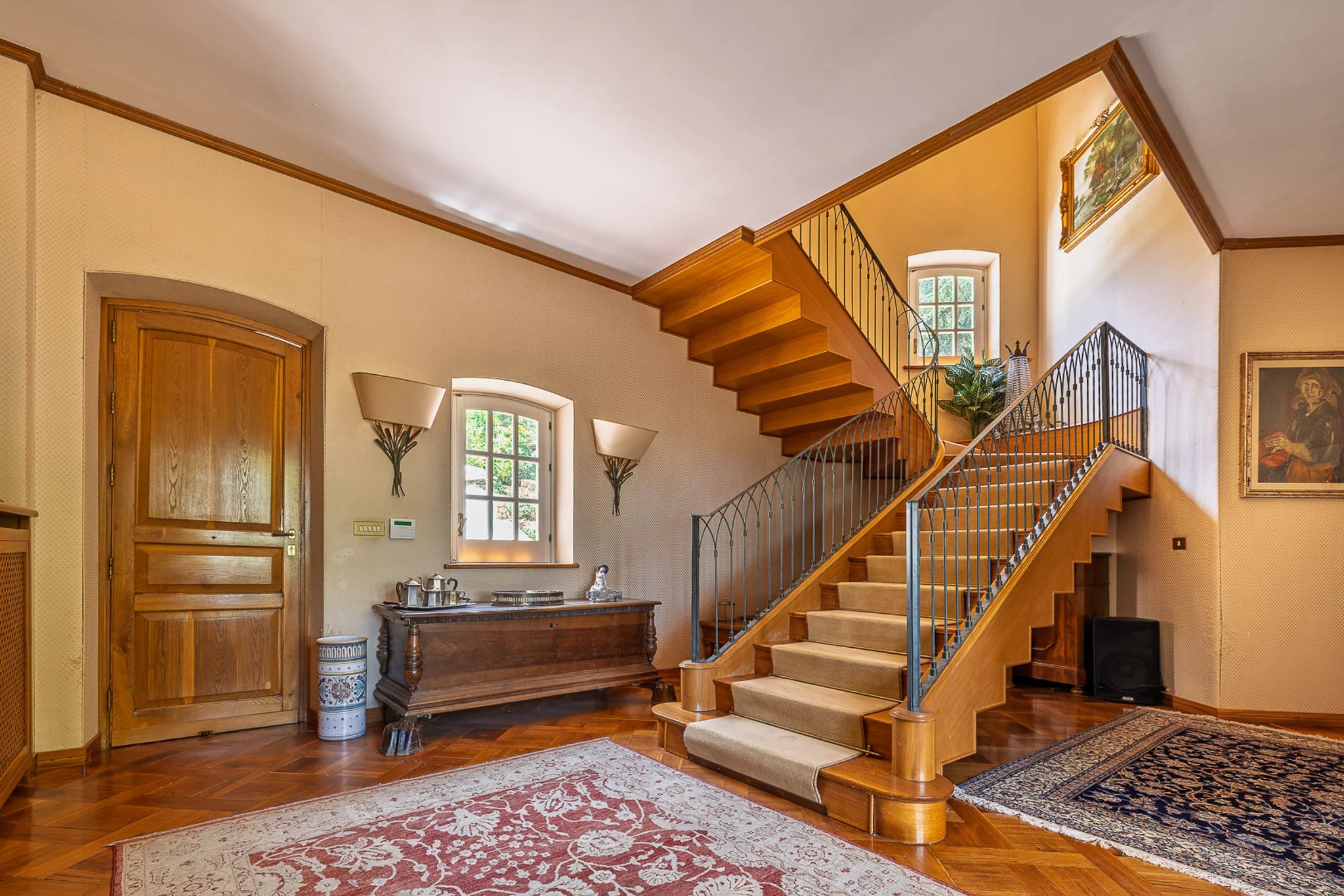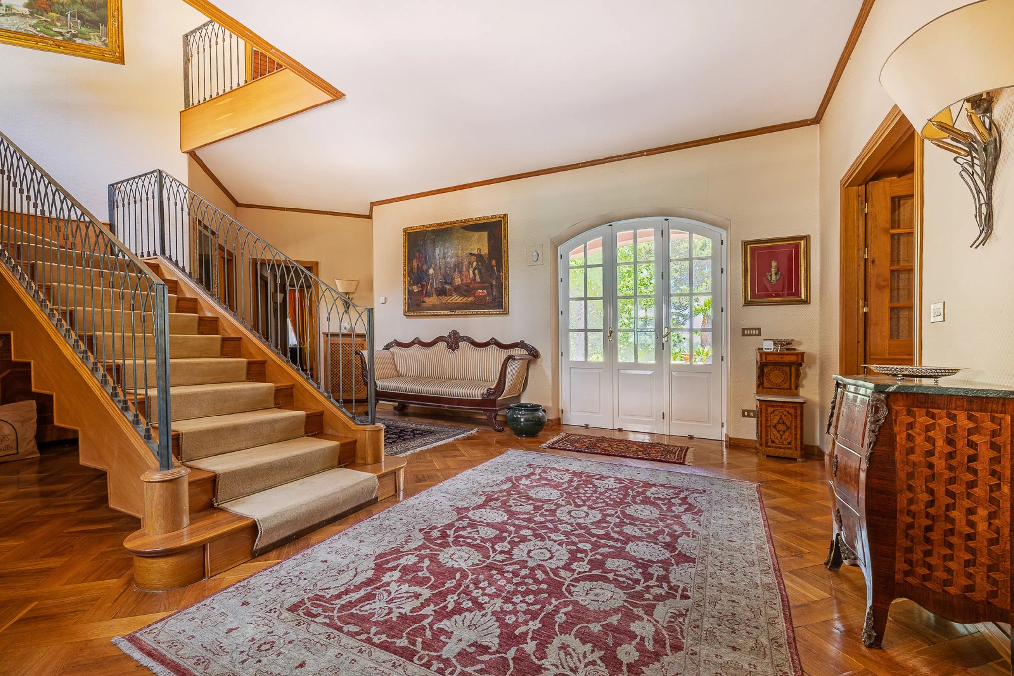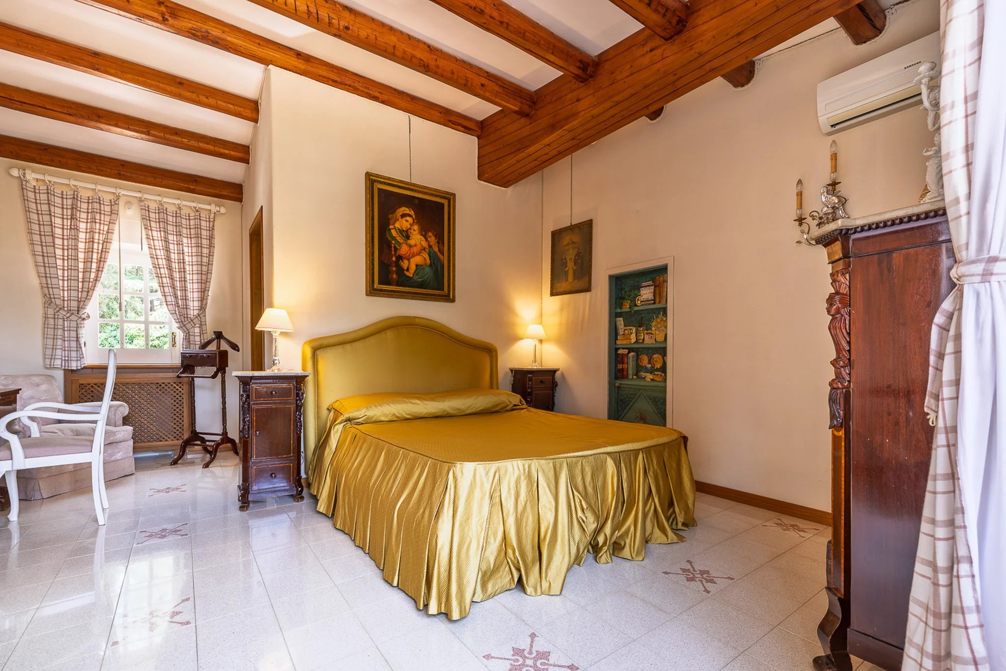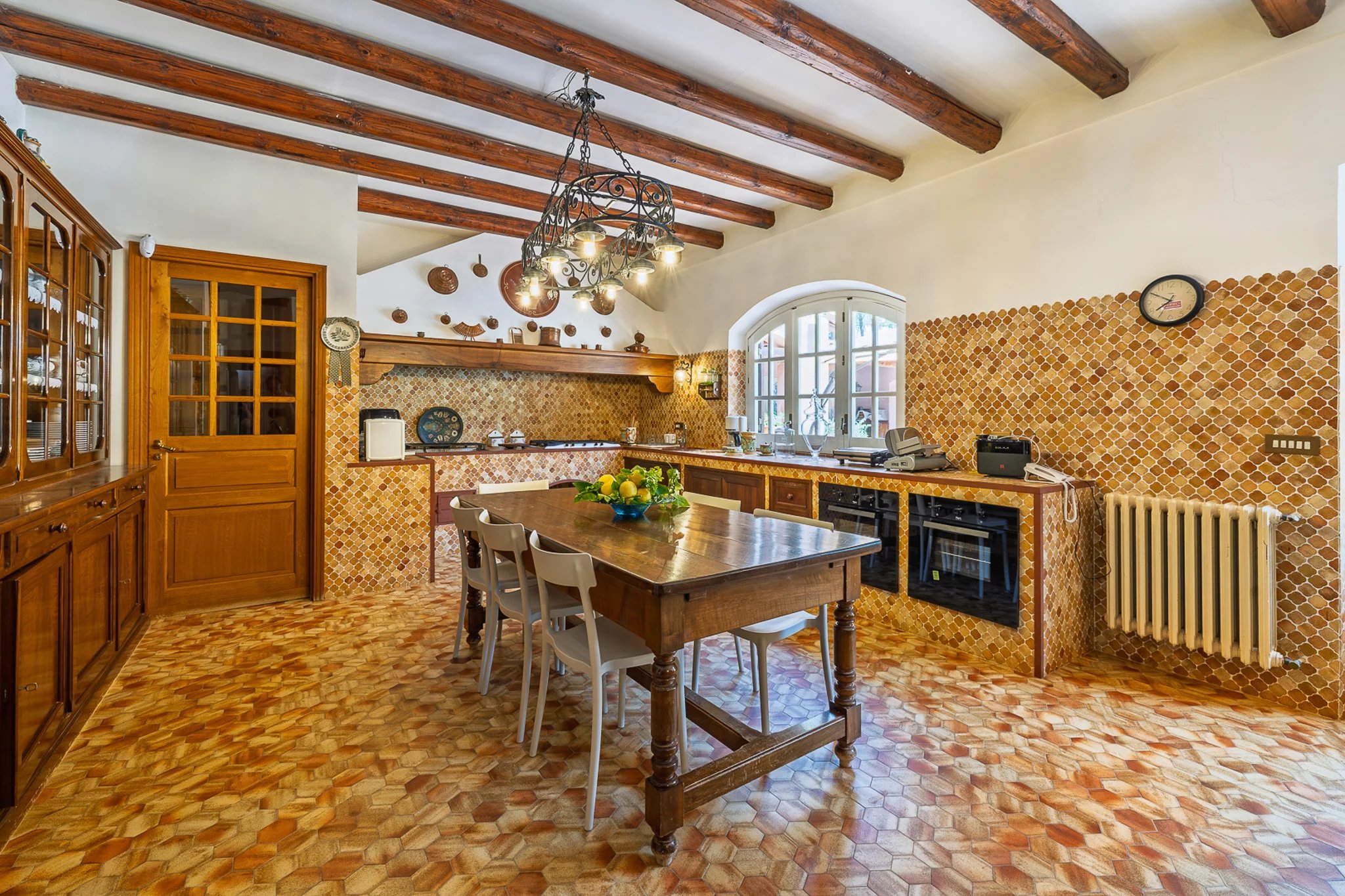 Das 400 m² große Haupthaus erstreckt sich über zwei großzügige Etagen. Im Mittelpunkt steht eine 50 m² große gemauerte Küche mit handbemalten Fliesen, eingebautem Grill und Holzofen – ein Ambiente, das die alte sizilianische Kochtradition widerspiegelt und gleichzeitig jeden modernen Komfort bietet. Die angrenzenden Wohnräume verfügen über handgefertigte Holzvertäfelungen und einen großen offenen Kamin und schaffen eine Atmosphäre, in der Abende lange andauern.