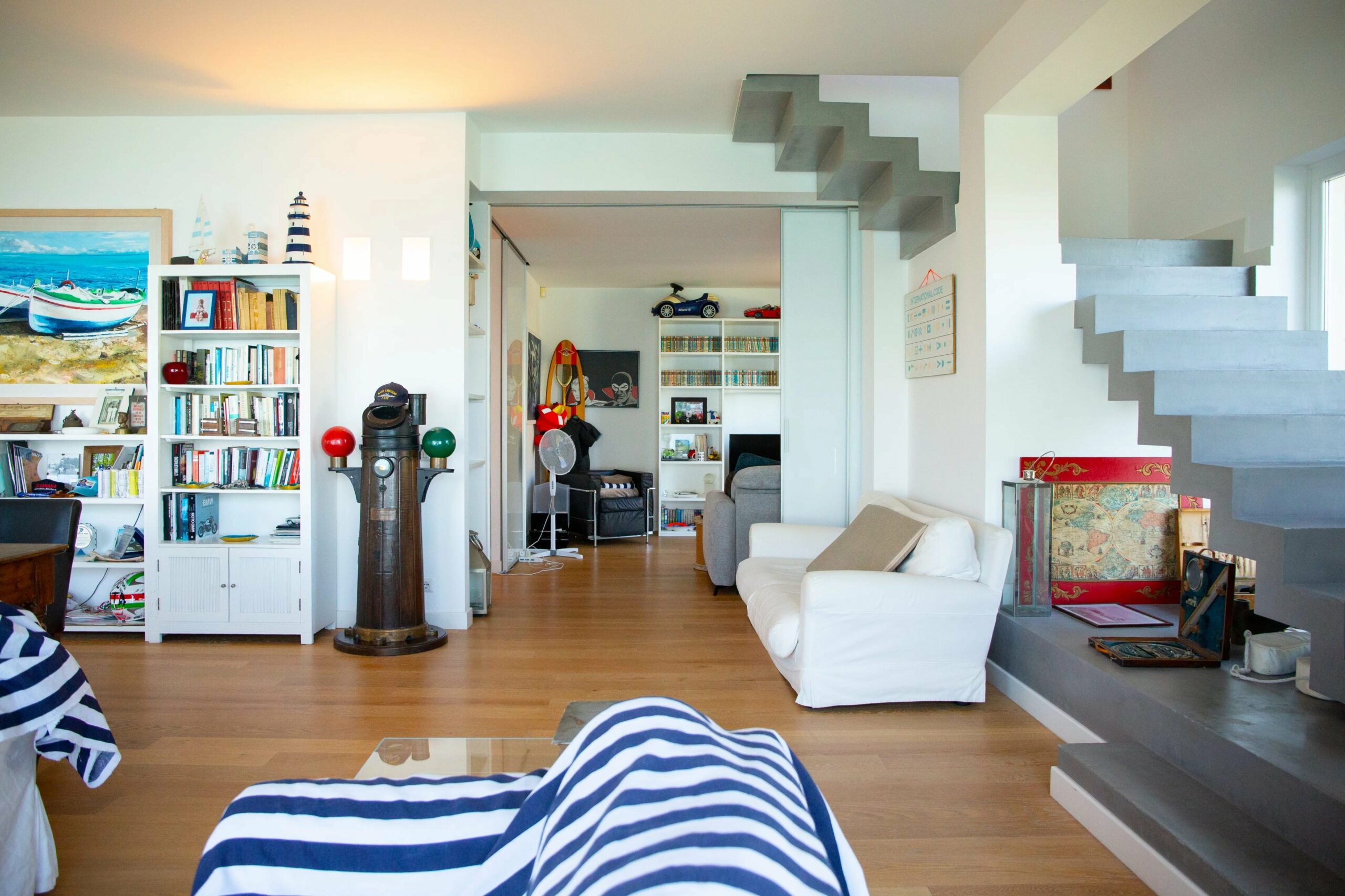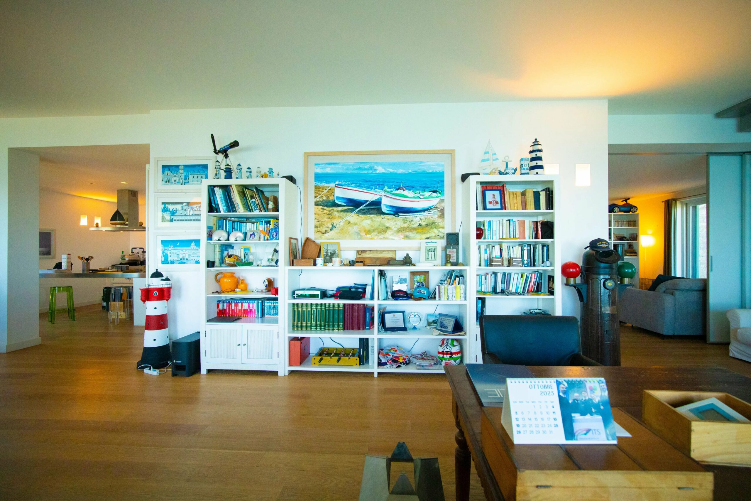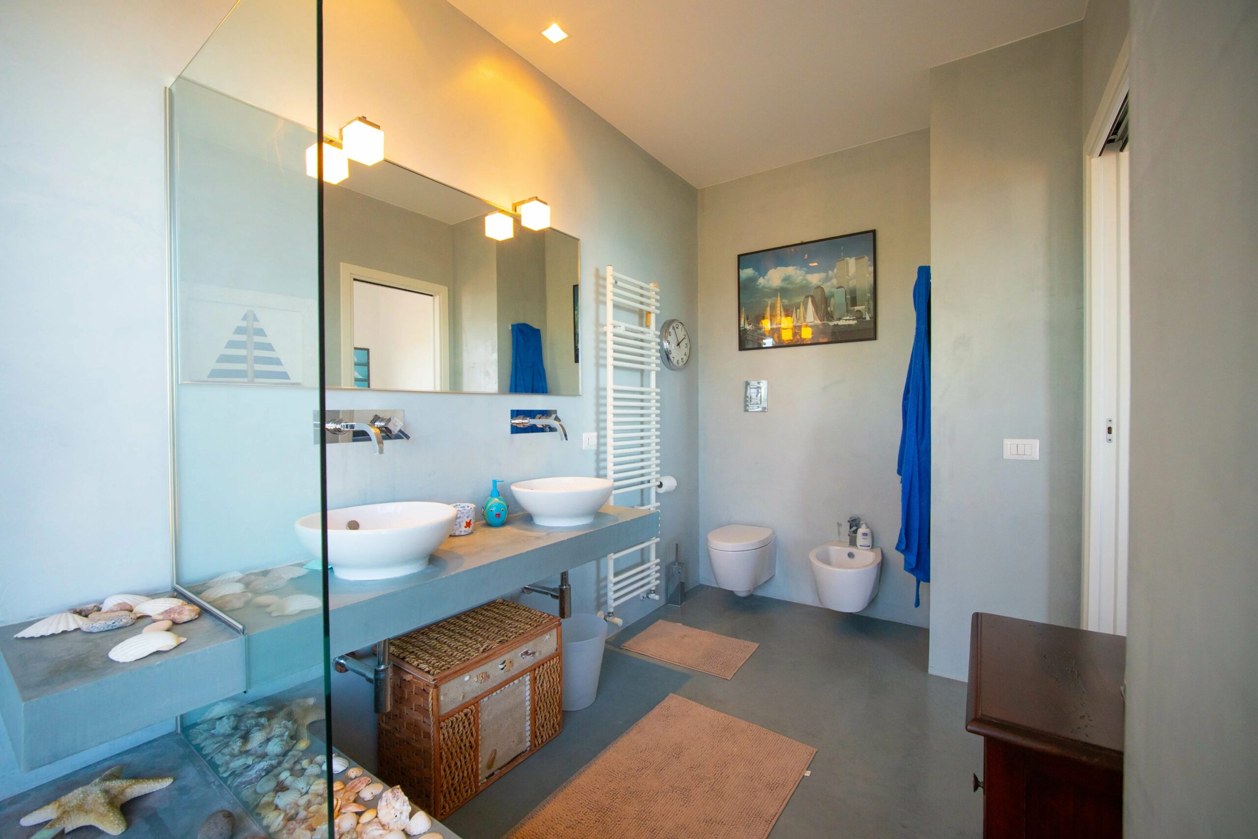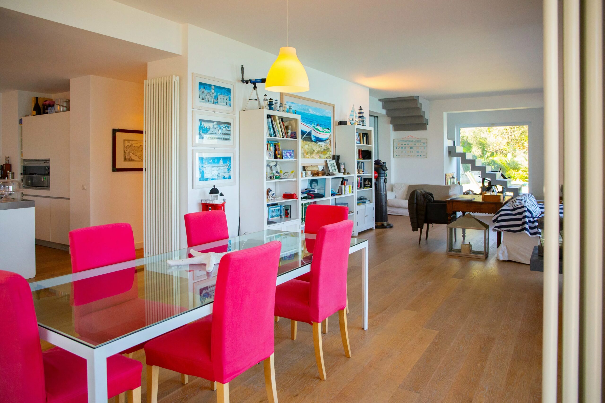 Das Erdgeschoss wird von einem weitläufigen, offenen Wohnbereich dominiert, dessen monumentale Fenster mit Meerblick das charakteristische Merkmal des Hauses sind. Raumhohe Fenster holen das Panorama ins Innere und schaffen ein fast maritimes Gefühl, bei dem man manchmal glauben könnte, auf der Brücke eines Schiffes zu stehen. Dies ist das Beste der modernen sizilianischen Architektur – unaufdringlich, aber dennoch auffällig im Dienste ihrer Umgebung.