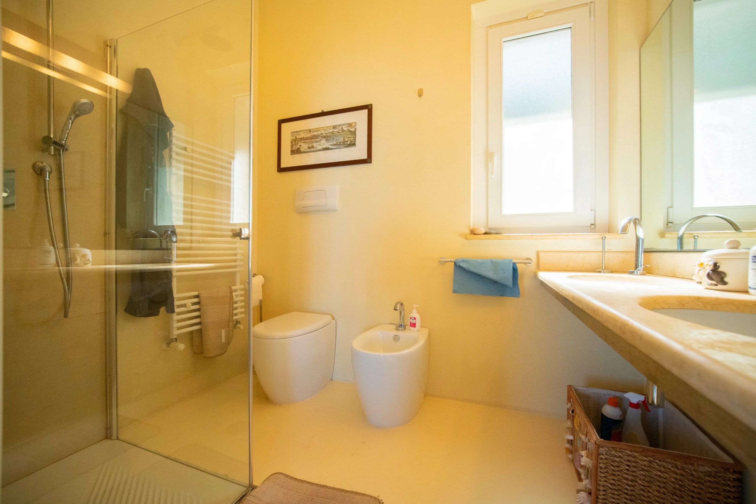 Die Villa Infinito ist zwar offensichtlich wunderschön, doch ihre technischen Spezifikationen sind nicht weniger beeindruckend. Die Heizung erfolgt durchgehend über Heizkörper – eine Seltenheit in Sizilien. Diese werden von einem Gaskessel gespeist, der aus einem großen externen LPG-Tank versorgt wird. Jeder Raum verfügt über eine Klimaanlage, die in erster Linie zur Kühlung im Sommer dient, aber auch in kurzer Zeit zusätzliche Wärme liefern kann, wenn Sie das Gefühl haben, dass die Zentralheizung einen schnellen Schub benötigt. Das Haus ist an das kommunale Wasser- und Abwassernetz angeschlossen, wobei eine große unterirdische Zisterne für eine beträchtliche Reserveversorgung sorgt.