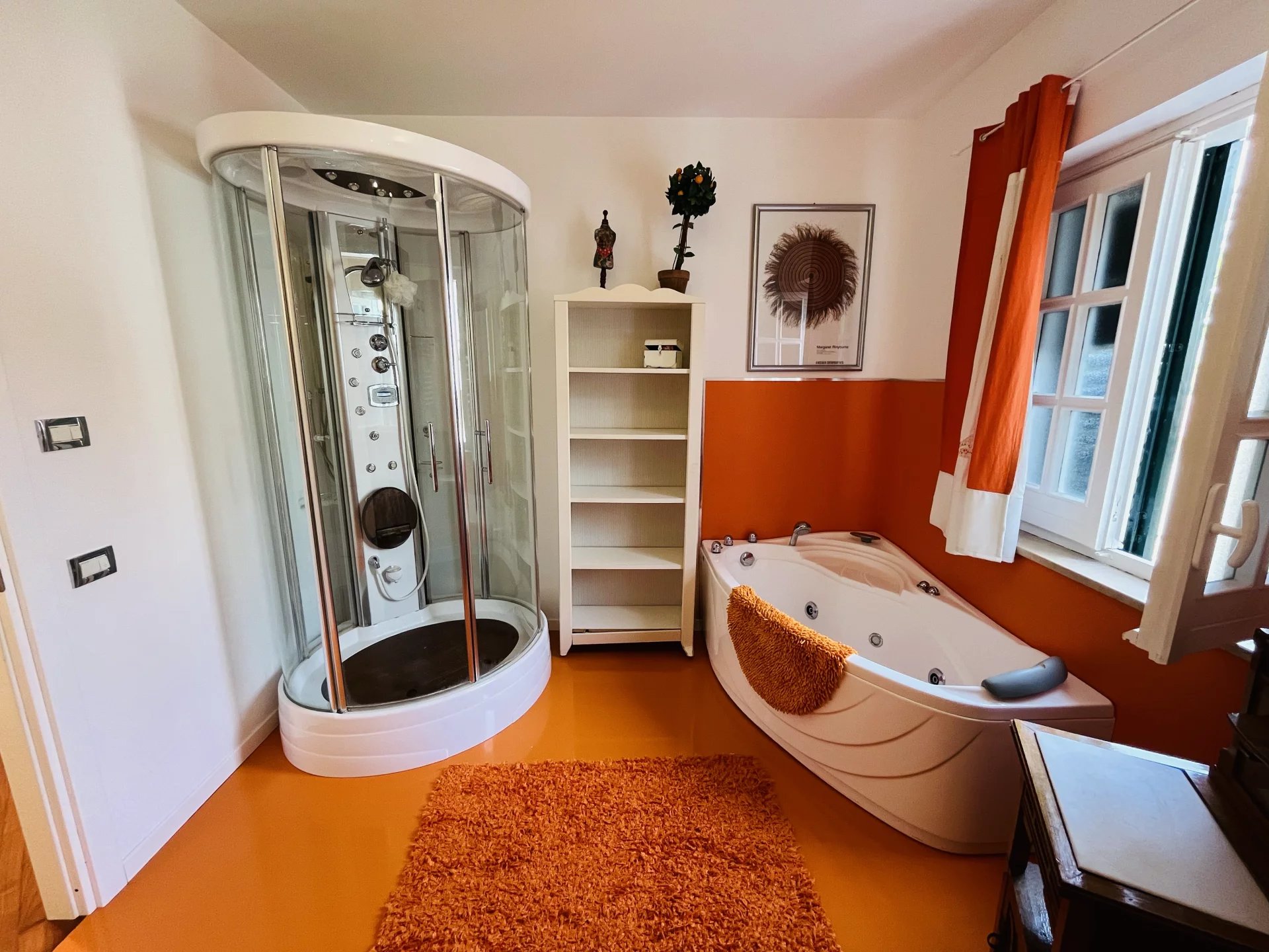 Two bedrooms, a medium-sized guest and a long master with a sea view, are found at this level. The family bathroom is another statement space, with a jacuzzi spa bath and a hydromassage shower giving you not one but two options to ease aching muscles and relieve any lingering tension after a long day exploring the countryside or swimming in the sea.