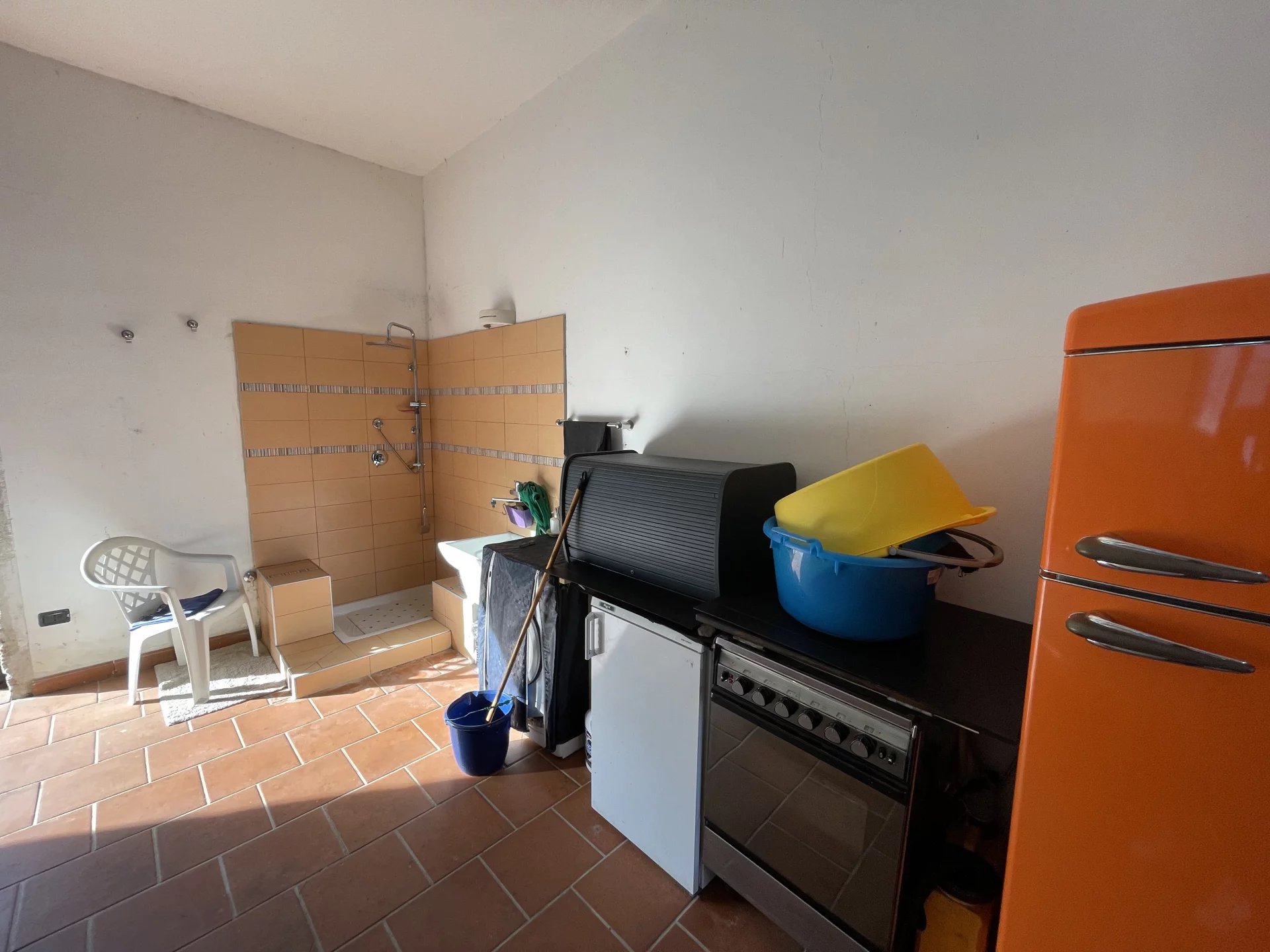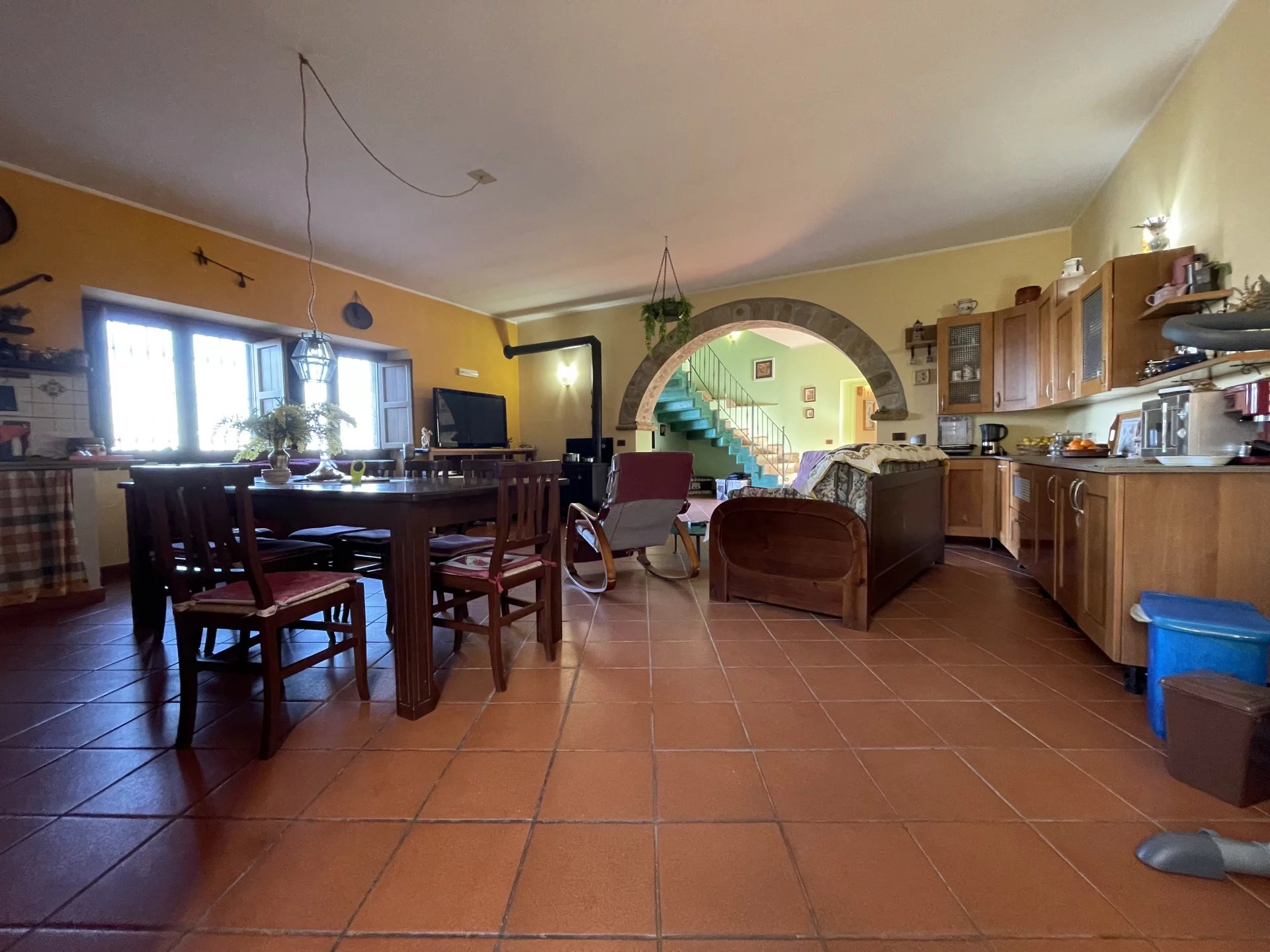 A huge open space dominates the ground floor, with kitchen, dining room, living room and hallway all flowing seamlessly into one, with the supporting wall broken by a wide, Romanesque arch. The kitchen area is split, spreading to all four walls of one of the large spaces, with plenty of work surfaces and cupboards, and a double sink. This really integrates the cooking and dining experience with the rest of family life – you won't find a better example of Sicilian values being reflected in the architecture! A tiled backsplash runs where needed, and a modern extractor fan will keep the space fresh and moisture-free.