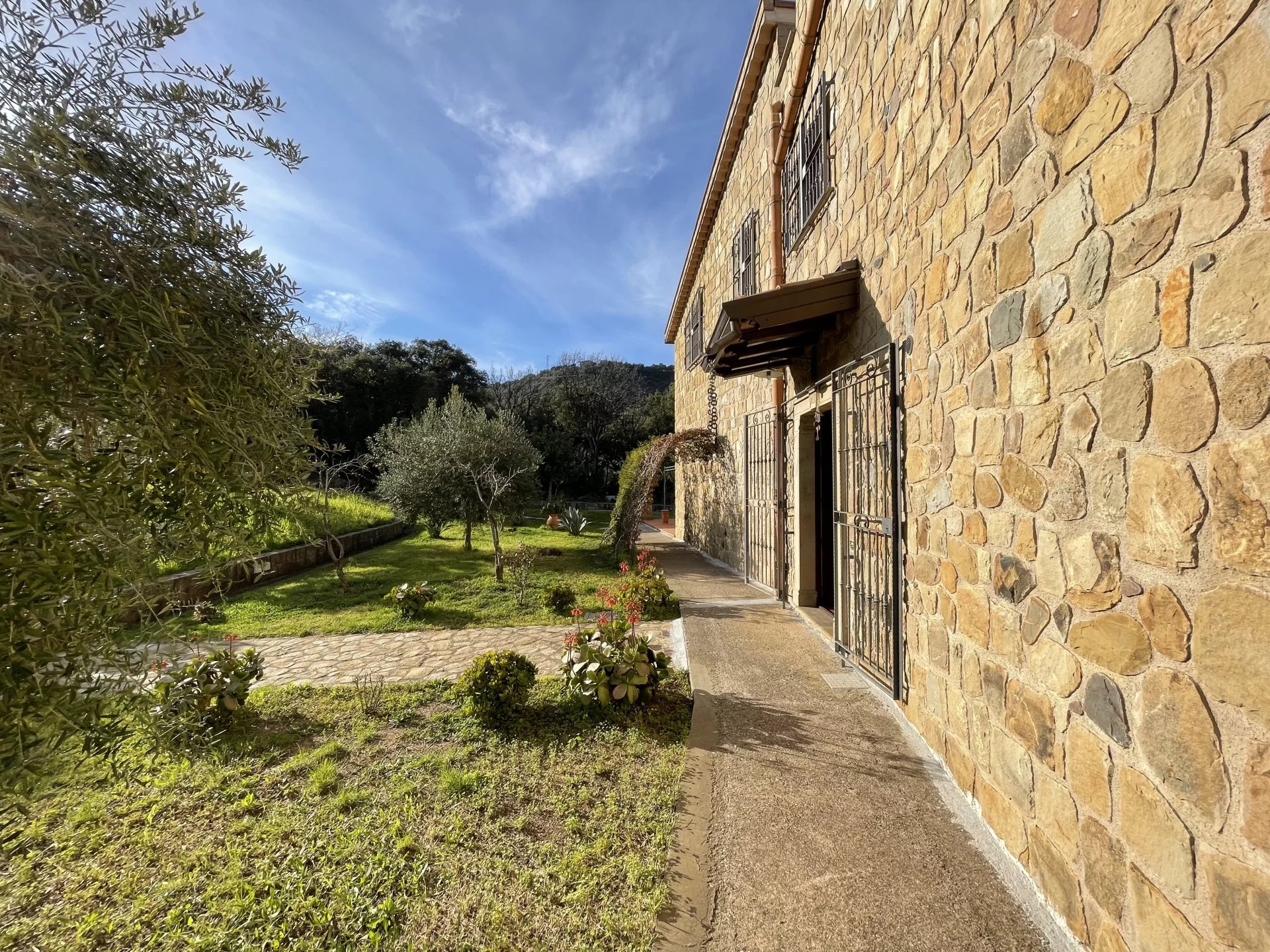 Directly outside there is an ample ring of garden and patio, and strikingly, a well-maintained lawn (no everyday sight in this part of the world!) making intelligent use of a durable Mediterranean grass, and dotted with small local trees and shrubs. A curved trellis creates an enchanting green alleyway that gives the house a fairytale charm. There is a large garage and, obviously, almost unlimited off-road parking outside.